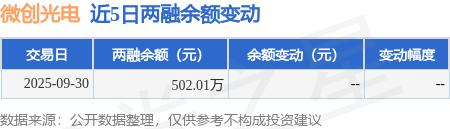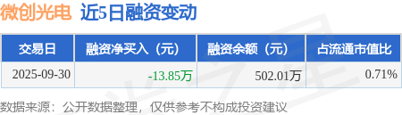证券之星消息,9月30日,微创光电(920198)融资买入7.75万元,融资偿还21.59万元,融资净卖出13.85万元,融资余额502.01万元。
