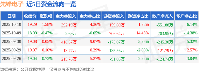 10月10日的资金流向数据方面,主力资金净流入392.19万元,占总成交额4.36%,游资资金净流入159.69万元,占总成交额1.78%,散户资金净流出551.88万元,占总成交额6.14%。
