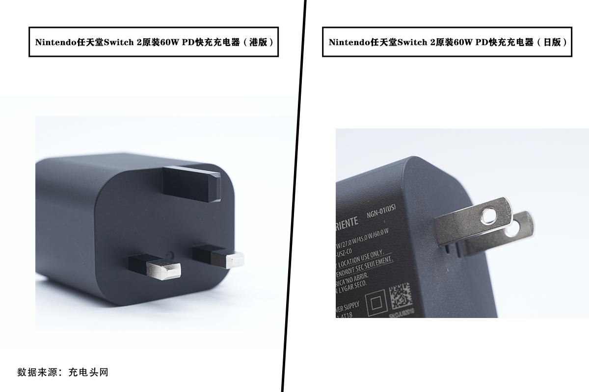 插脚方面,港版配备的是英规插脚,日版采用的是 A 型扁平双脚。