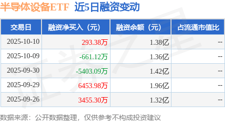 证券之星消息,10月10日,半导体设备ETF(561980)融资买入3227.38万元,融资偿还2934.0万元,融资净买入293.38万元,融资余额1.38亿元,近20个交易日中有11个交易日出现融资净买入。