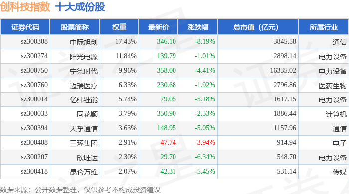 证券之星消息,10月14日,创科技(399276)指数报收于7057.58点,跌3.87%,成交1224.52亿元,换手率4.19%。当日该指数成份股中,上涨的有6家,冰川网络以4.24%的涨幅领涨,下跌的有44家,南大光电以8.77%的跌幅领跌。