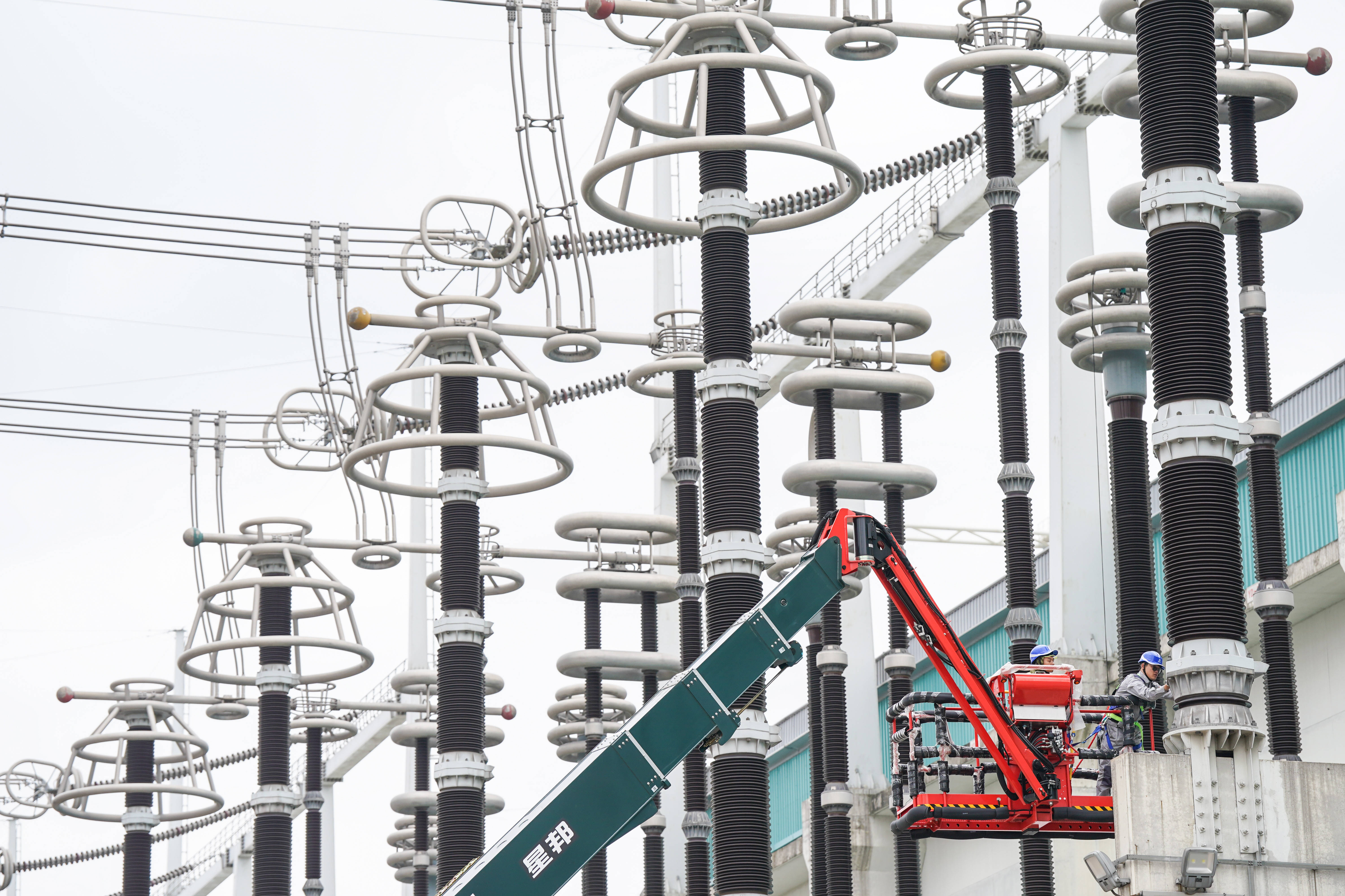 10月20日,安徽送变电工程有限公司检修人员在古泉换流站进行检修作业。 新华社发(郑贤列 摄)
