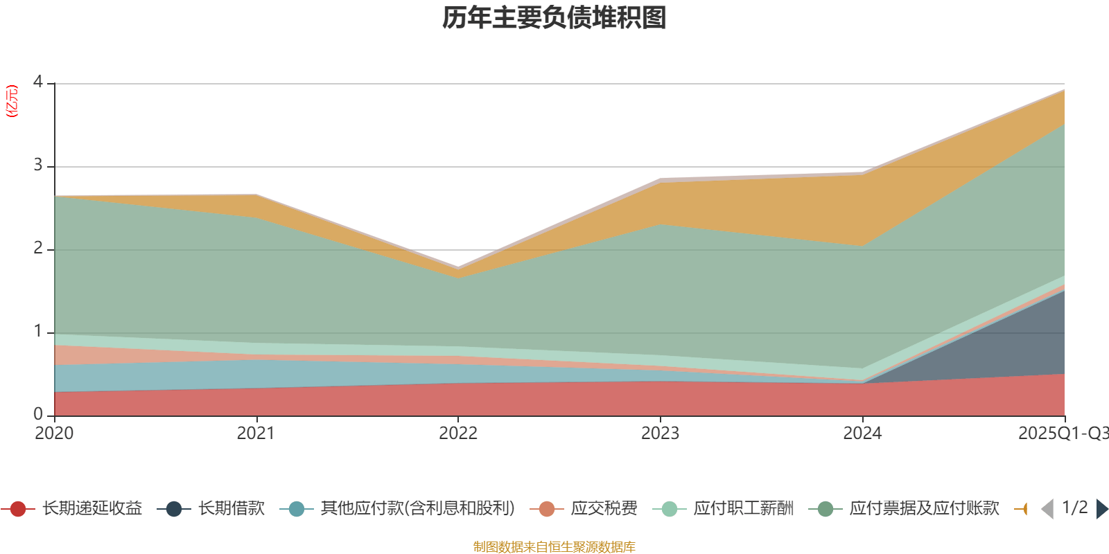 负债重大变化方面,截至2025年三季度末,公司长期借款占公司总资产的4.62%,上年末为0;短期借款较上年末减少53.29%,占公司总资产比重下降2.19个百分点;应付票据及应付账款较上年末增加24.06%,占公司总资产比重上升1.5个百分点;长期递延收益较上年末增加30.11%,占公司总资产比重上升0.5个百分点。