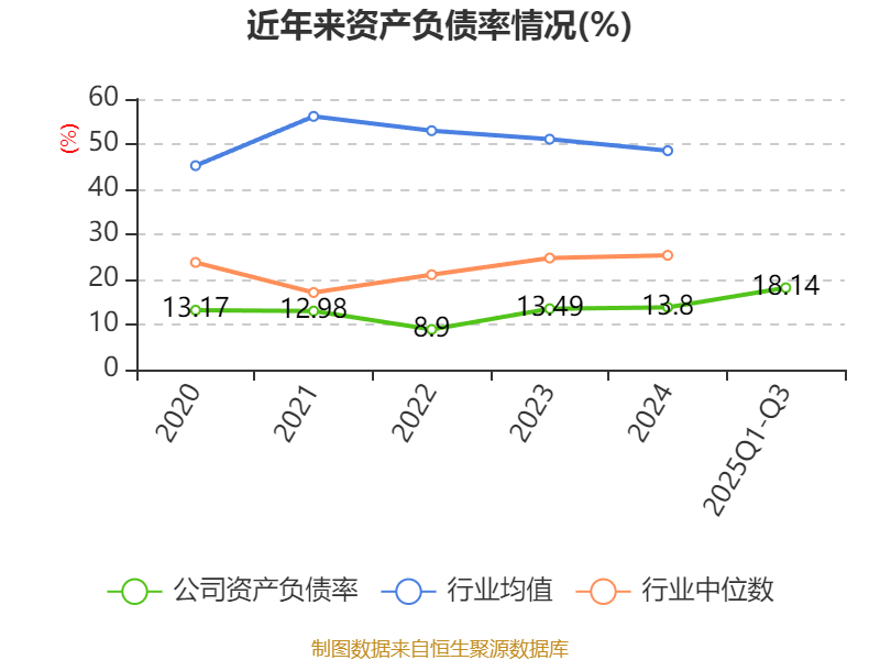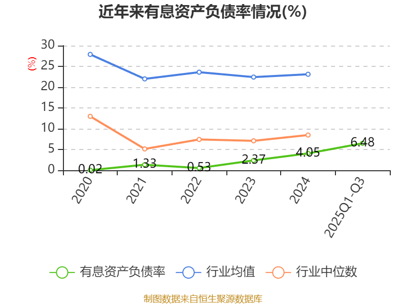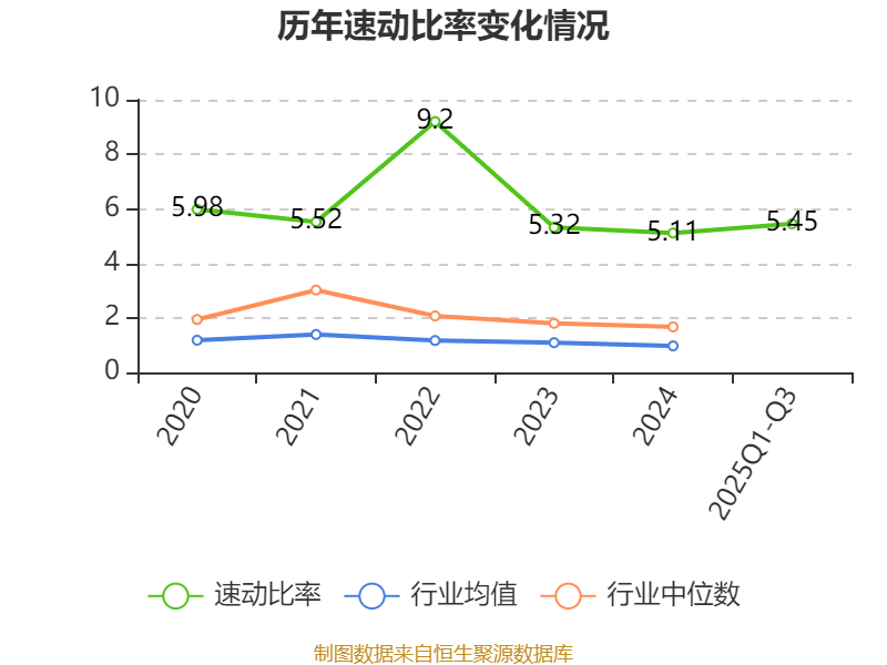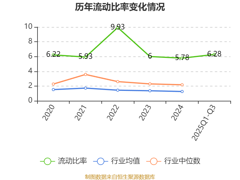 2025年前三季度,公司流动比率为6.28,速动比率为5.45。