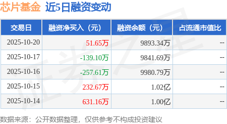 证券之星消息,10月20日,芯片基金(159801)融资买入1290.38万元,融资偿还1238.73万元,融资净买入51.65万元,融资余额9893.34万元,近20个交易日中有12个交易日出现融资净买入。