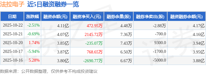 证券之星消息,截至2025年10月22日收盘,法拉电子(600563)报收于119.5元,下跌2.51%,换手率1.01%,成交量2.27万手,成交额2.73亿元。