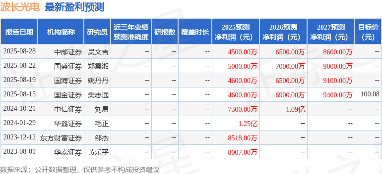 国金证券股份有限公司樊志远,周焕博近期对波长光电进行研究并发布了研究报告《营收增加盈利企稳改善,光学业务带动公司业绩增长》,给予波长光电买入评级。