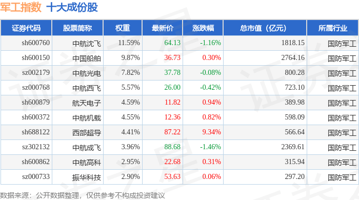 资金流向方面,军工指数(399959)成份股当日主力资金净流出合计9.51亿元,游资资金净流入合计1847.94万元,散户资金净流入合计9.33亿元。成份股资金流向详情见下表: