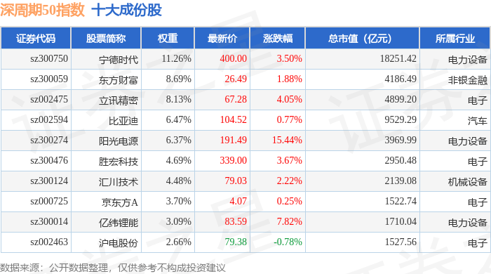 深周期50(399670)指数十大成份股详情如下: