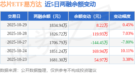 证券之星消息,10月29日,芯片ETF易方达(516350)融资买入315.8万元,融资偿还307.58万元,融资净买入8.22万元,融资余额1834.94万元,近20个交易日中有12个交易日出现融资净买入。