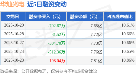 证券之星消息,10月29日,华灿光电(300323)融资买入873.25万元,融资偿还1575.92万元,融资净卖出702.67万元,融资余额7.65亿元,近20个交易日中有13个交易日出现融资净买入。