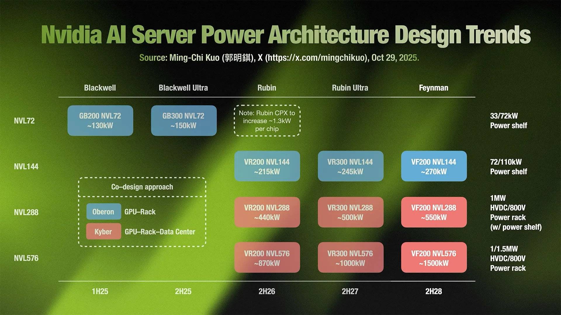 郭明錤预测,在未来一到两年内,英伟达需要在效率优势与量产可行性之间做出权衡。不过,从长期趋势看,具备最高效率的单级直降方案仍是最终的技术收敛方向。