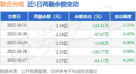 证券之星消息,10月31日,联合光电(300691)融资买入629.67万元,融资偿还1148.25万元,融资净卖出518.59万元,融资余额2.19亿元。