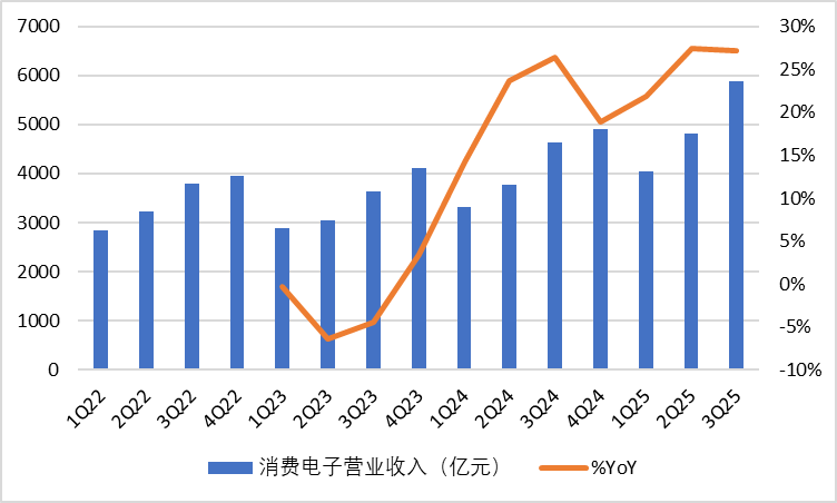 2025Q3实现营业收入5889.46亿元,yoy+27.2%;