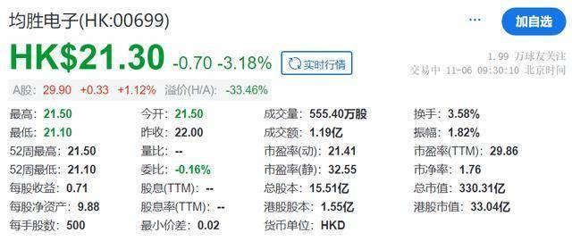 乐居财经 王敏 11月6日,均胜电子(HK:00699)在港交所挂牌上市,中金公司和瑞银集团为联席保荐,开盘破发跌超3%,总市值330.31亿港元。
