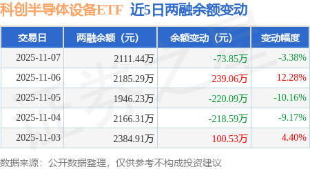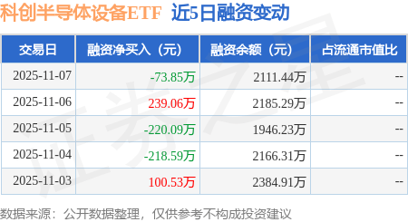 证券之星消息,11月7日,科创半导体设备ETF(588710)融资买入834.3万元,融资偿还908.14万元,融资净卖出73.85万元,融资余额2111.44万元,近20个交易日中有11个交易日出现融资净买入。