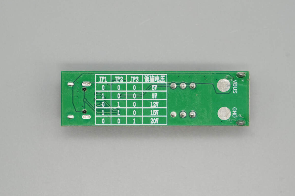 背面大面积焊盘标注 VBUS 与 GND,可直接飞线到被测载具或负载。