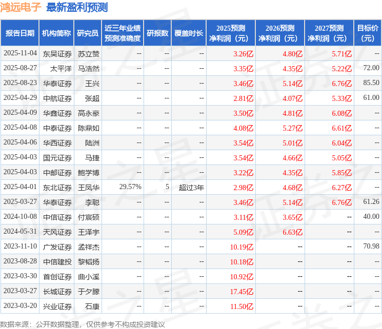 鸿远电子2025年三季报显示,前三季度公司主营收入14.27亿元,同比上升22.27%;归母净利润2.22亿元,同比上升74.56%;扣非净利润2.1亿元,同比上升70.76%;其中2025年第三季度,公司单季度主营收入4.09亿元,同比上升22.24%;单季度归母净利润3845.71万元,同比上升437.31%;单季度扣非净利润3194.14万元,同比上升443.96%;负债率18.88%,投资收益184.37万元,财务费用-337.7万元,毛利率45.49%。