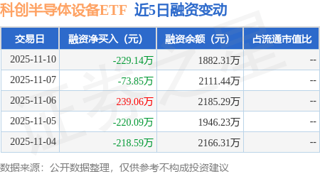 证券之星消息,11月10日,科创半导体设备ETF(588710)融资买入985.94万元,融资偿还1215.08万元,融资净卖出229.14万元,融资余额1882.31万元,近20个交易日中有11个交易日出现融资净买入。