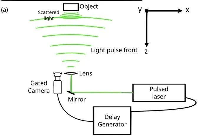 在具体实验设置上,研究人员使用持续时间1皮秒(1秒=10¹²皮秒)的超短激光照亮运动物体,并同时在激光器旁边架设超高速摄像机给物体拍照。每次激光脉冲后,相机在一个极短的特定延迟时间后开门曝光。