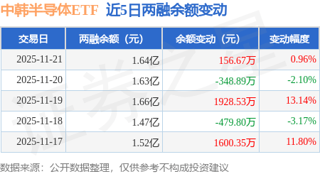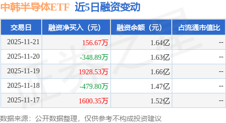 证券之星消息,11月21日,中韩半导体ETF(513310)融资买入2.78亿元,融资偿还2.77亿元,融资净买入156.67万元,融资余额1.64亿元。