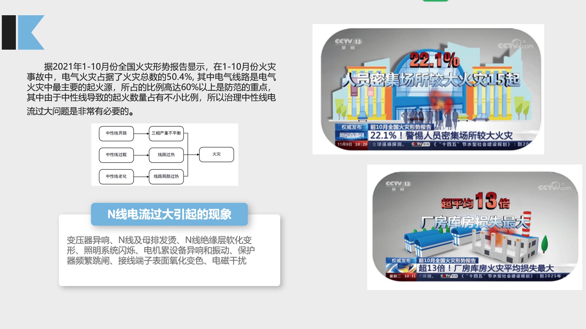 电压异常:N线电流过大会导致N线电位漂移(不再是零电位),造成三相电压不平衡,某些相的电压会异常升高,烧毁连接在该相上的敏感设备。