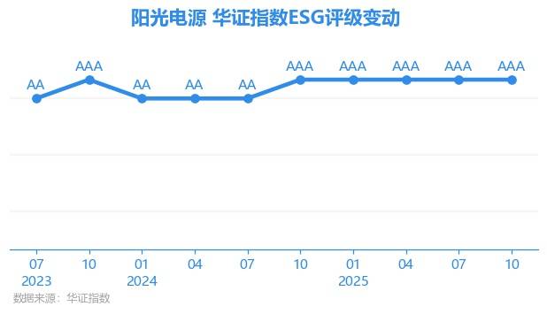日前,华证指数公布了新一期(2025年10月31日)的ESG评级结果,阳光电源(300274.SZ)获得AAA评级(华证指数评级为C起至AAA九档,C为最低档,AAA为其最高一级评级/AA为其第二档),上一期(2025年7月31日)ESG评级为AAA。本期ESG评级在330家电气设备行业A股上市公司中排名第1(上一期排名第2)。
