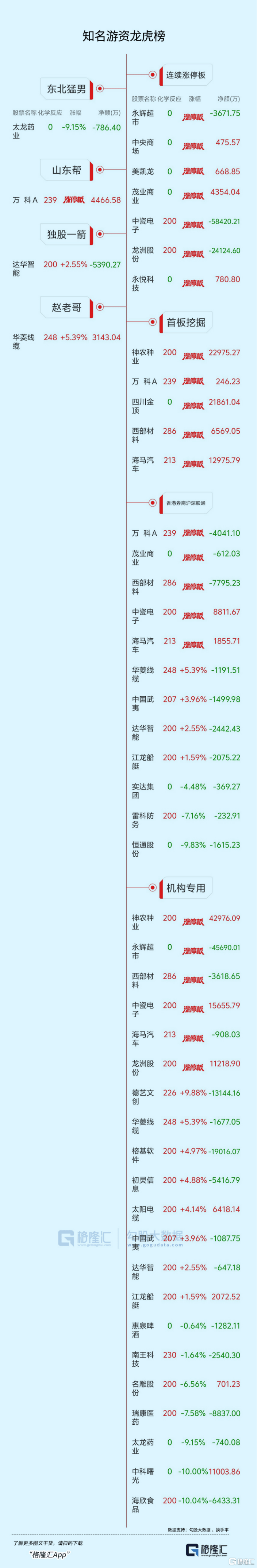 龙虎榜单日净买入额前三为神农种业、四川金顶、海马汽车,分别为2.30亿、2.19亿、1.30亿。