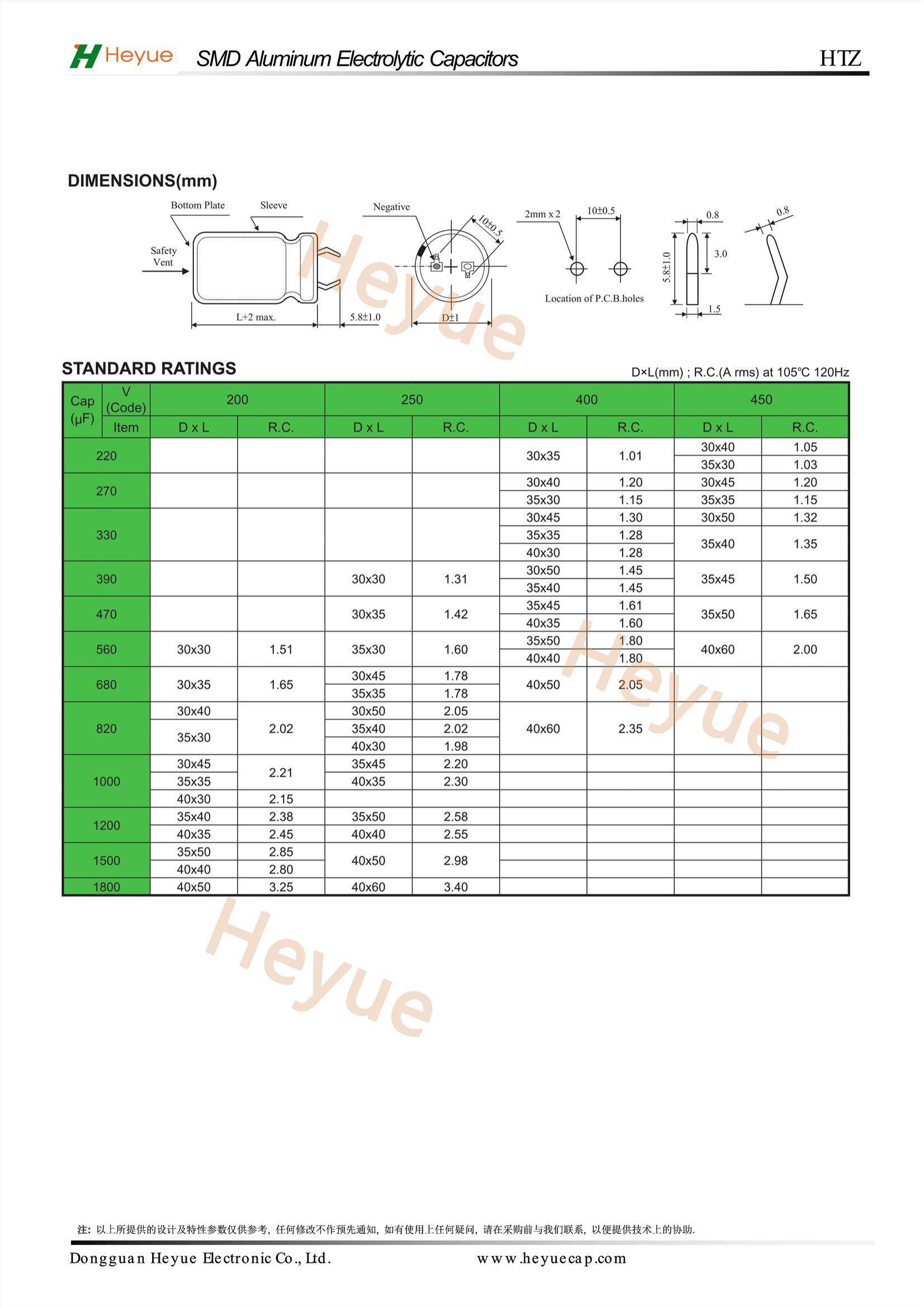 产品名:牛角电解电容 系列/类型:HTz(两极) 工作温度范围-4...