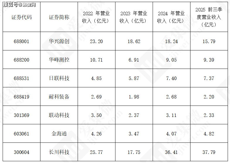 截止11月30日,市值最高的前三名企业是长川科技(488.88亿元)、华峰测控(224.75亿元)、华兴源创(123.09亿元),市值排名与企业业绩增长高度相关,2025年前三季度营收增长前三的金海通、华峰测控和长川科技,市值表现同样强劲。从市盈率来看,截至11月30日,排除亏损企业华兴源创后,市盈率最高的公司是联动科技,其市盈率(TTM)为387.17倍,不过其业绩基数较小,2024年净利润仅2030.37万元。市盈率是排名第二的日联科技(66.11倍) 。