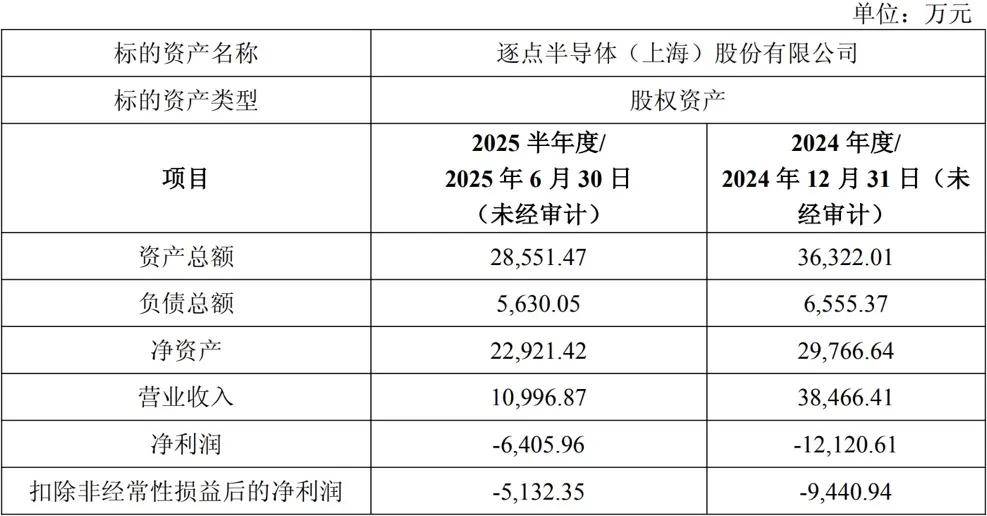 不过,此交易也面临一定挑战。从已披露数据来看,逐点半导体近期财务状况难言优异,2024年全年及2025年上半年,逐点半导体均处于亏损状态,净利润分别为-1.21亿元和-6405.96万元。2025年上半年,这家公司的营业收入仅实现1.10亿元,不及2024年全年的一半,且净资产也从截至2024年12月31日的2.98亿元降至截至2025年6月30日的2.29亿元。
