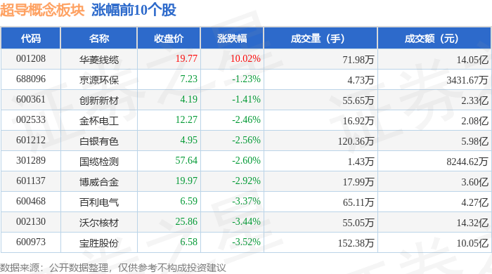 从资金流向上来看,当日超导概念板块主力资金净流出17.97亿元,游资资金净流入2.69亿元,散户资金净流入15.29亿元。超导概念板块个股资金流向见下表: