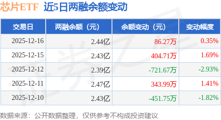 证券之星消息,12月16日,芯片ETF(512760)融资买入1939.06万元,融资偿还1727.0万元,融资净买入212.06万元,融资余额2.02亿元。
