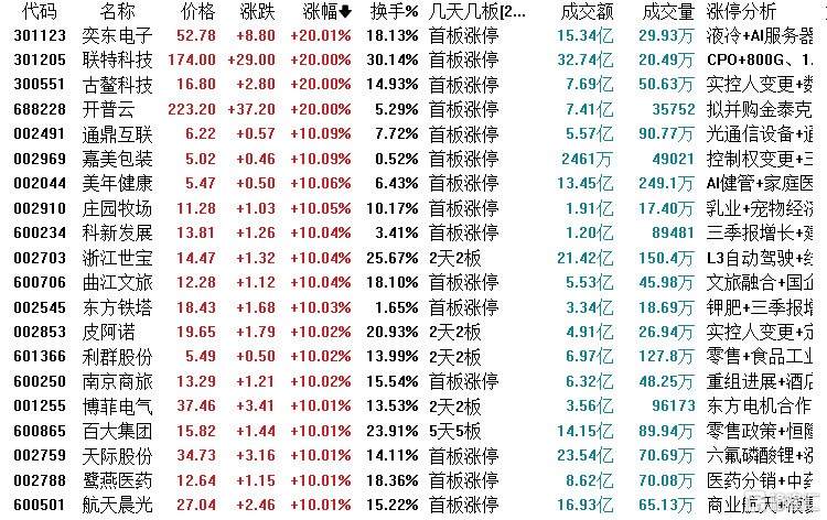 龙虎榜单日净买入额前三为深南电路、炬光科技、开普云,分别为2.68亿元、2.38亿元、1.72亿元。
