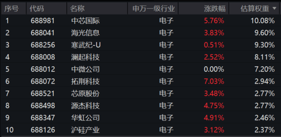 【科创芯片50ETF(588750)标的指数前十大成分股】