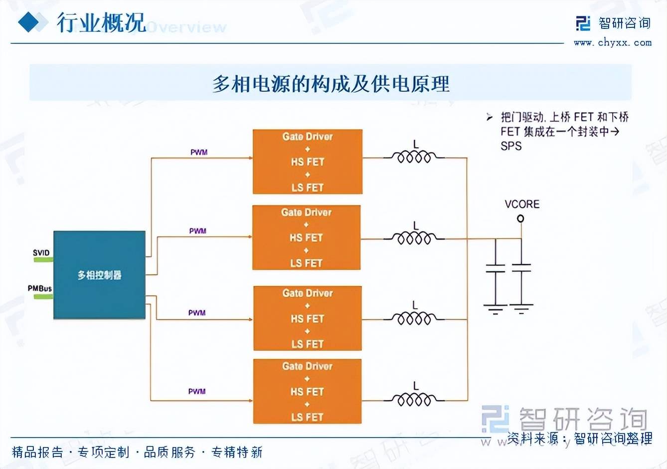 多相电源具有强大的电流输出能力、优异的瞬态响应性能、极低的输出纹波、更高的效率、更低的热耗散、高的功率密度,是现代高性能计算芯片供电的核心技术,已广泛应用于服务器、台式电脑、显卡、通信设备、汽车电子及高端消费电子等领域中,为CPU、GPU、FPGA等核心芯片供电的绝对主流和最优解决方案。