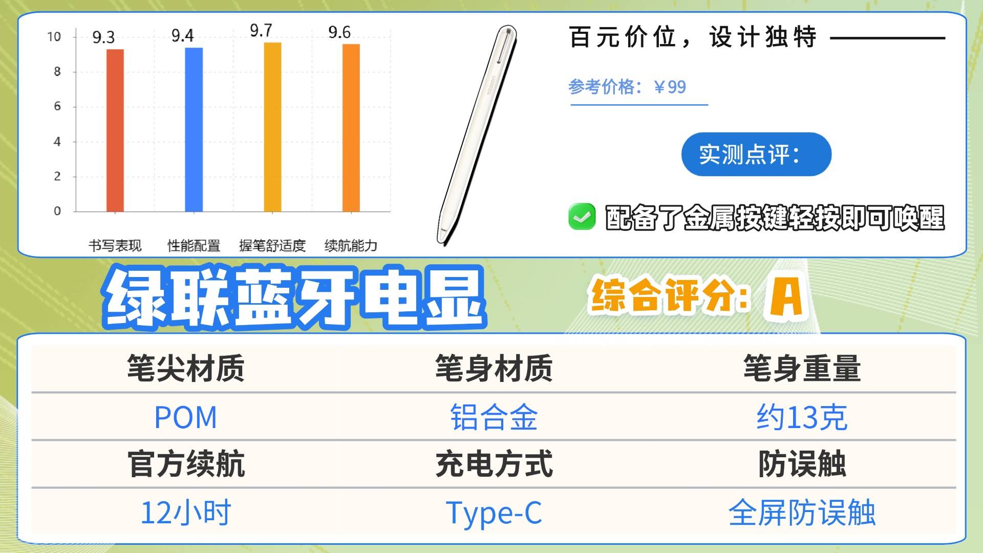 口碑推荐9:绿-联蓝牙电显电容笔