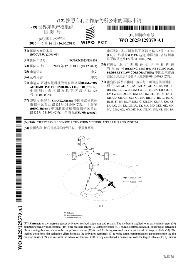 证券之星消息,根据企查查数据显示万通智控(300643)公布了一项国际专利申请,专利名为“胎压传感器的激活方法、装置及系统”,专利申请号为PCT/CN2023/139408,国际公布日为2025年6月26日。