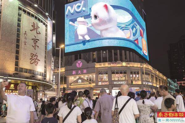 南都设计的裸眼3D猫咪登上北京路步行街大屏。 南都资料图