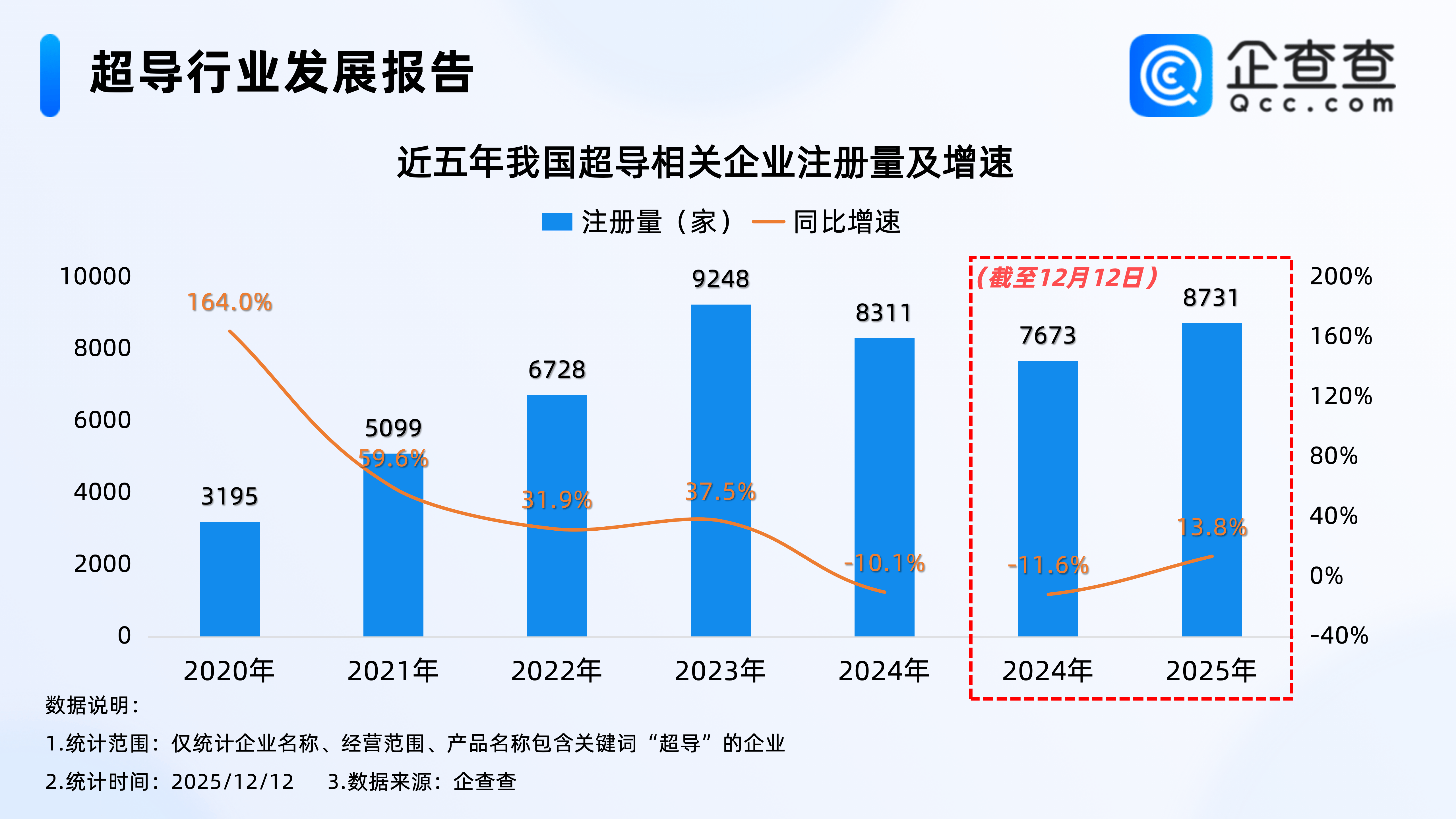 企查查数据显示,2020年开始,我国超导相关企业每年注册量逐年增加,2023年注册量达9248家,达近五年注册量峰值,截至12月12日,2025年我国已注册8731家超导相关企业,已超2024年全年,相比2024年同期增加13.8%。
