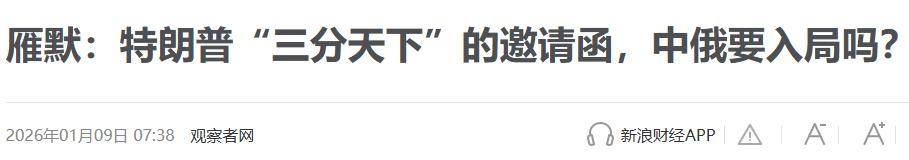 更有深意的是,特朗普近期提出的三分天下构想:美国主导美洲,中国主攻亚太,俄罗斯经营欧亚。这一设想虽显粗暴,却透露出他真实的战略意图——在全球收缩战线,集中资源守住自己的后院。要实现这一目标,必须确保中俄不联手反制,特别是对中国,特朗普希望通过区域共治换取中国在拉美问题上的默许,甚至促成合作。