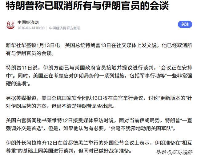 1月的中东政坛,最震撼的莫过于特朗普的翻脸速度,就在外界还在热议伊朗外长阿拉格齐与美方特使威特科夫秘密接触、外交对话曙光初现之际,特朗普突然抛出重磅声明,全面取消与伊朗的所有会谈,摆出“没得谈”的强硬姿态。