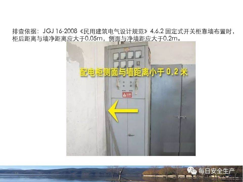 15.检查配电箱、开关箱是不是装设在干燥、通风及常温场所,如果你的仓库是丙类仓库,那么配电箱、开关箱不宜安装在室内,粉尘场所应安装在非防爆分区外的上风方向,防止配电箱、开关箱积尘而留下隐患。