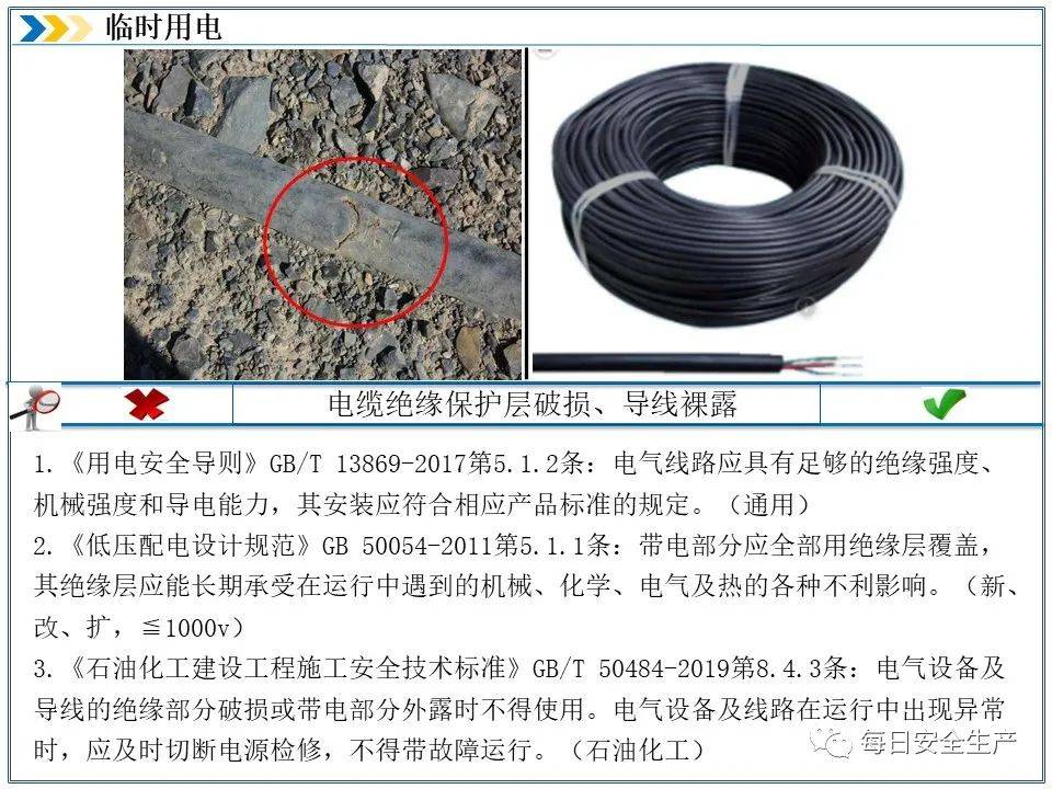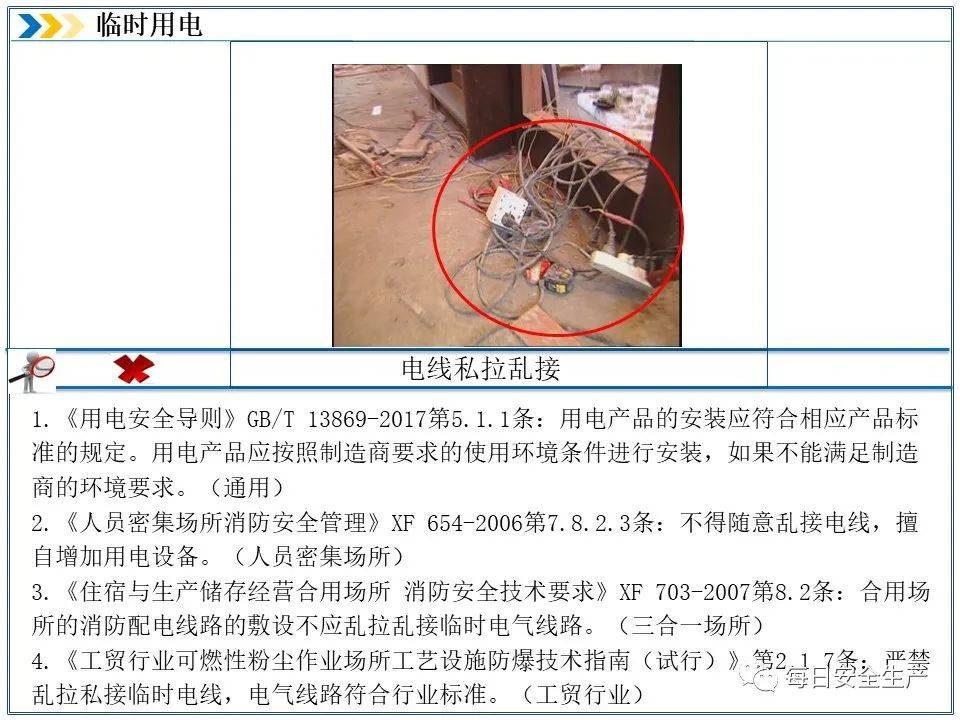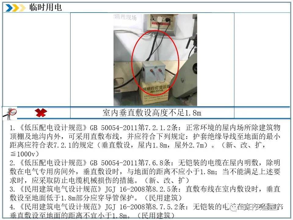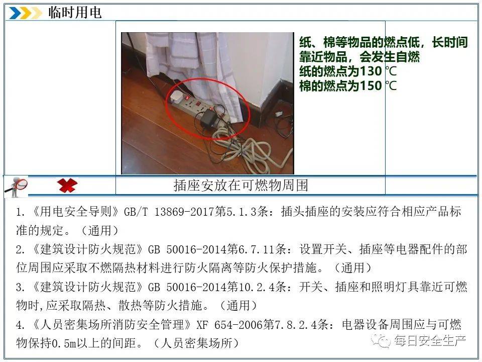 【依据】《重大火灾隐患判定办法》(GA653-2006 )6.1.8.1违反规定在可燃材料或可燃构件上直接敷设电气线路或安装电气设备。