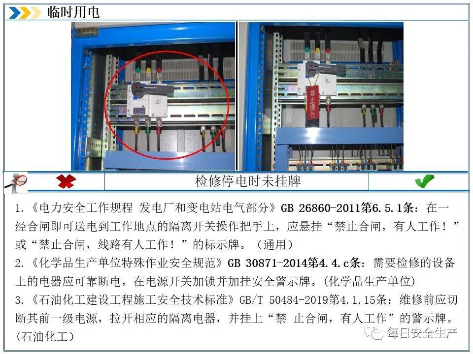 【依据】《安全标志及其使用导则》(GB2894-2008) 当心触电警示标志张贴在有可能发生触电危险的电器设备和线路,如:配电室、开关等。