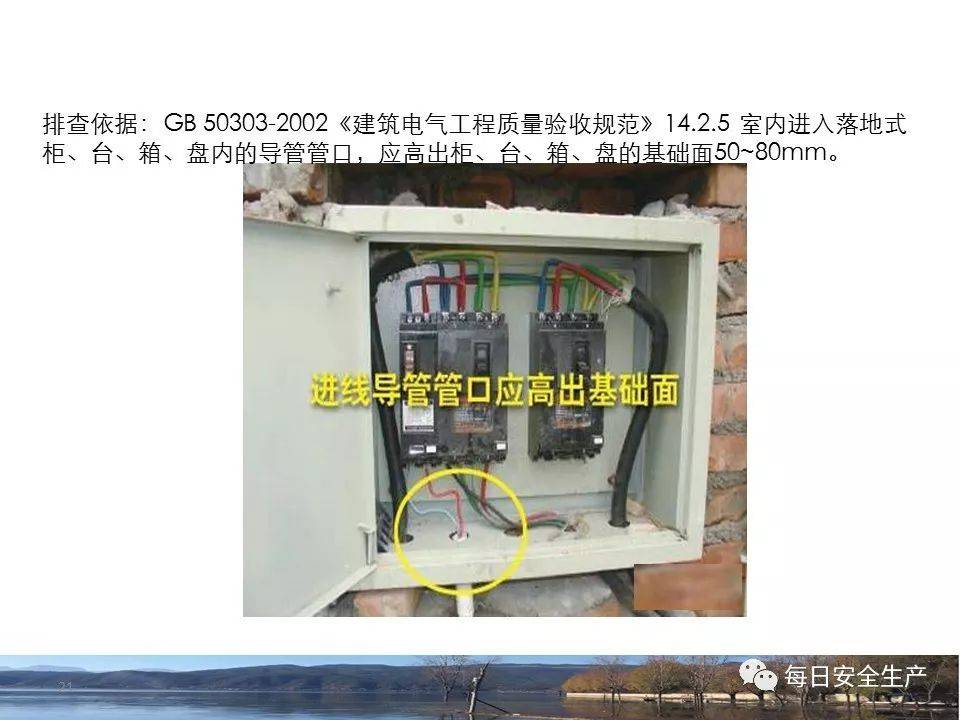 6.检查配电箱引出的进出导线的部位有没有设绝缘垫护或用导管引入50mm~80mm,防止电线绝缘层破损。