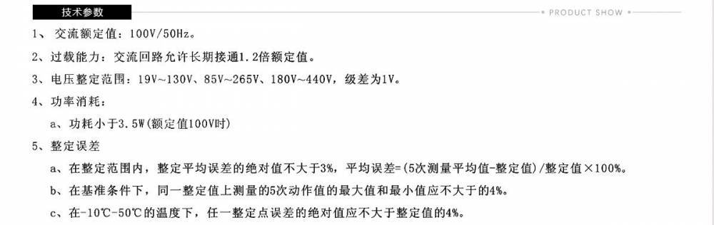 整定误差:在1V~440V范围内,整定平均误差的值不大于3%,保证继电器的动作准确性。