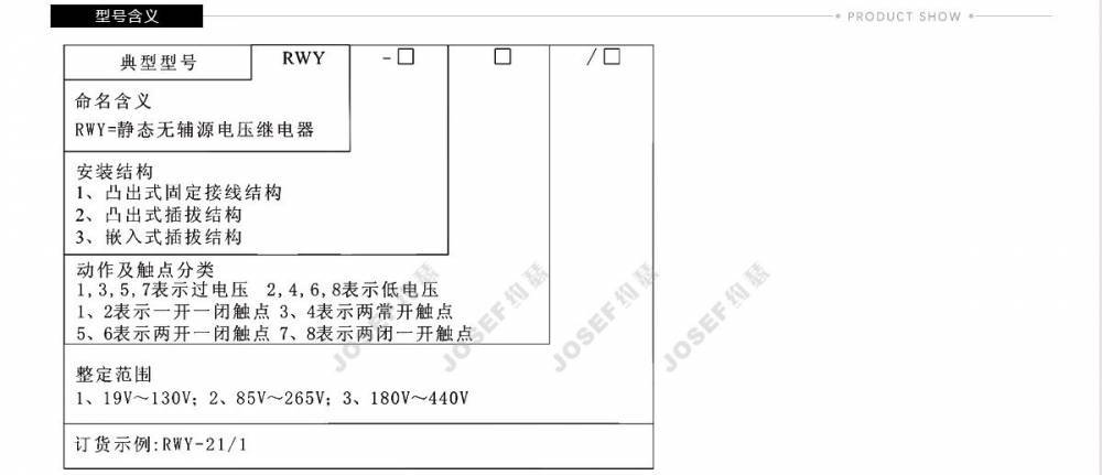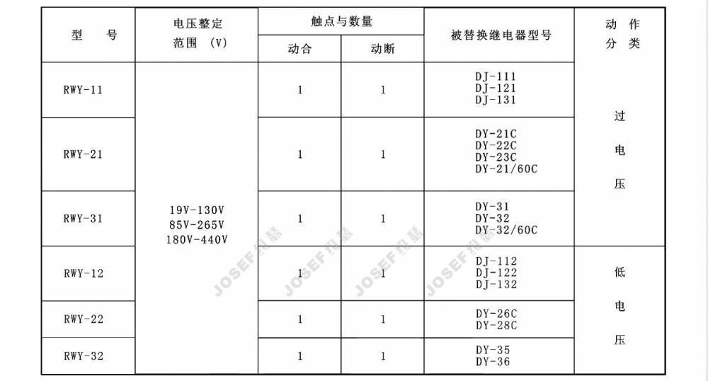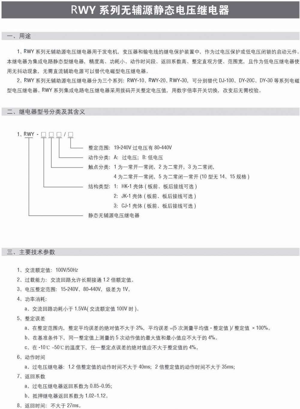 RWY系列无辅源电压继电器系列型号