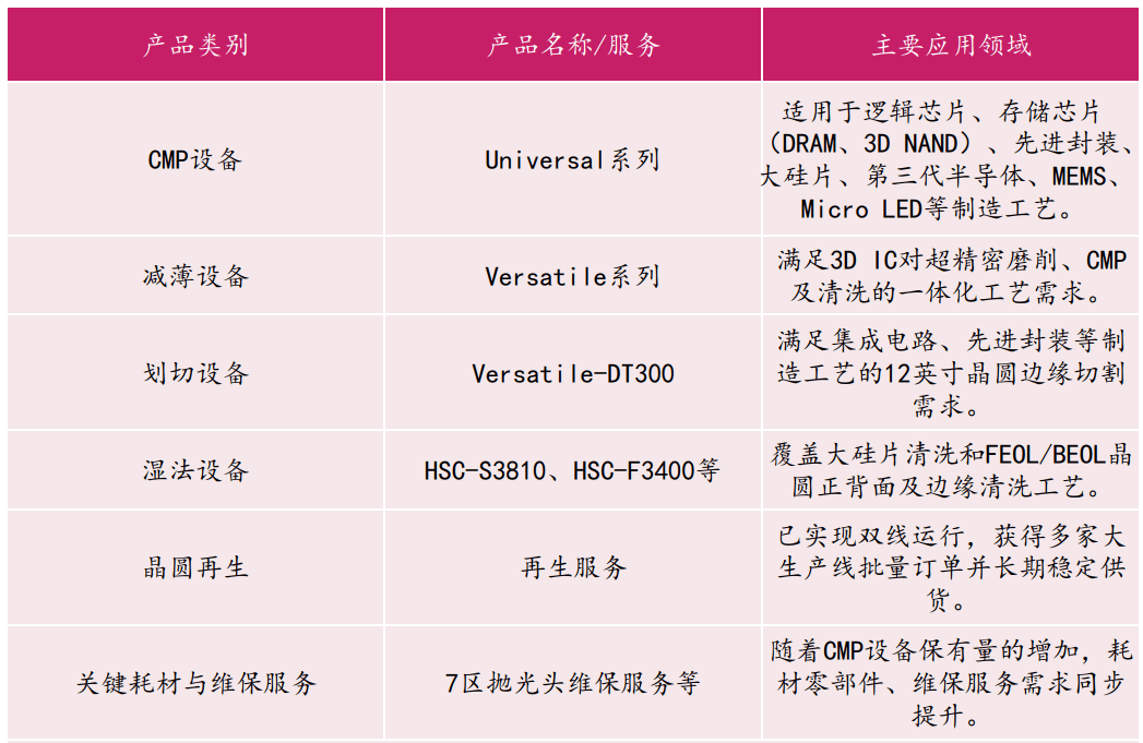 公司提供一套完整的芯片制造 “工具箱”,包含打磨、减薄、清洗等设备及配套服务, 在 HBM 生产中可覆盖减薄、键合等关键环节,提供一体化工艺设备支持。