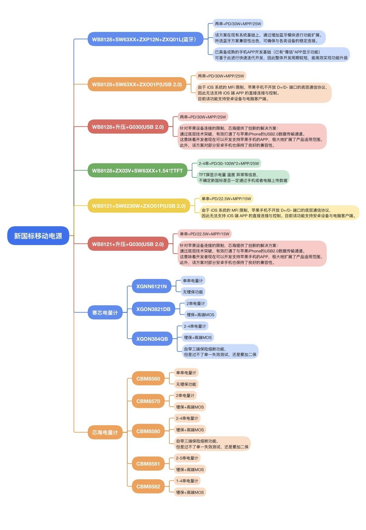 尊信电子除了以搭配成都易冲QI方案以外,还推出众多个性化方案和客户定制方案,在大功率领域包括30W--240W多口/自带线/TFT屏个性化方案。提供全套解决方案包括主控/MOS/多节锂保/二次保护/被动均衡/主动均衡等移动电源类方案。下面对这几个主要路径作一个简单梳理。